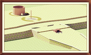 Por descripciones y textos, especialmente de Ulloa, miembro de la Misión Geodésica, se conoce que hasta 1736 existía en Puntiachil un gran cilindro de adobe que al proyectar su sombra permitía conocer fenómenos astronómicos, como los equinoccios y solsticios. En la actualidad ha desaparecido, resultado de saqueos, efectos climáticos y el uso de sus paredes para la elaboración de adoquines y ladrillos. En aquella época, 1740, cuenta Ulloa que al pasar por el pueblo de Cayambe identificó un templo o adoratorio hecho de adobes, ubicado sobre un montículo de tierra no muy alto y con una figura perfectamente circular. Ulloa narra también que su diámetro era de ocho tuesas que hacen de 18 a 20 varas con corta diferencia es decir, la figura circular tenía un diámetro de entre 14 a 16 metros, además tenía 60 varas de circuito, es decir, 50 metros. De este relato histórico se puede inferir que aquel espacio arqueológico, de forma cilíndrica y probablemente de cangagua, se hallaba en la cima de una plataforma artificial, que Ulloa la denomina “montecillo”. Esta construcción perteneció al período de integración (800 d.C. hasta 1500 d.C.); se atribuye como obra de los Caranquis, sin embargo no hay duda de que se trata también de un espacio histórico y cultural de los Cayambis.